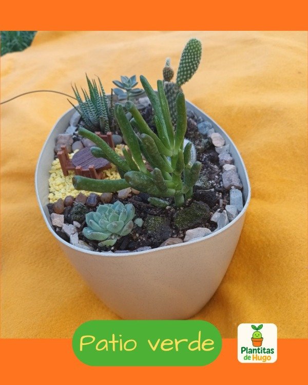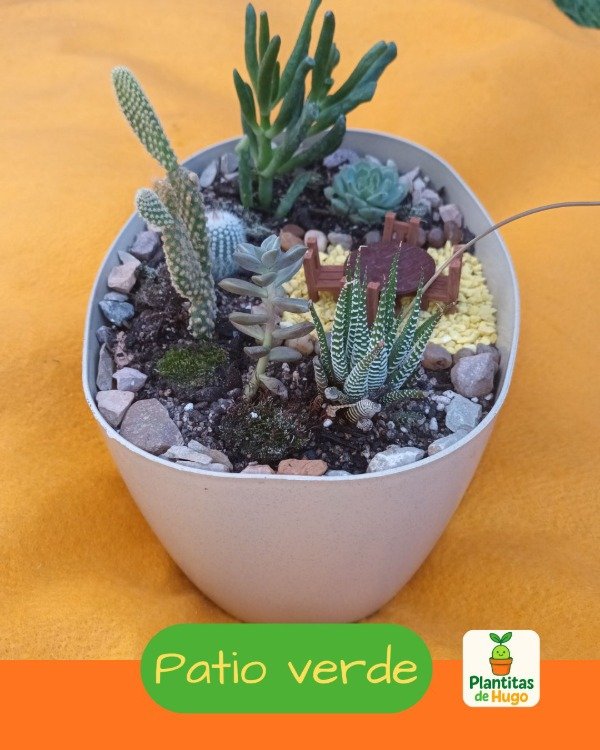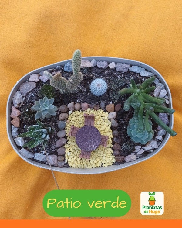 Este patiecito hermoso, es como un sueño en miniatura: viene con dos cactus y 4 sucus: lleno de sustrato especial para suculentas y una mesita con 4 sillitas para que en tu imaginación, te sientes una tarde de domingo a disfrutar de tu tiempo. ¡Ideal para regalar o regalartelo!