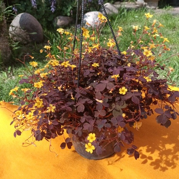 Soporta bien temperaturas entre 18 y 23 grados Celsius, y puede tolerar descensos hasta los 5 grados. Requiere riego moderado y regular, especialmente en primavera y verano. Viene en una hermosa maceta colgante y como ves, está espléndida, llena de flores para que te la lleves a casa y alegres tu vida. Además, como todo trébol ¡Te trae buena suerte! ¡Llevatela!