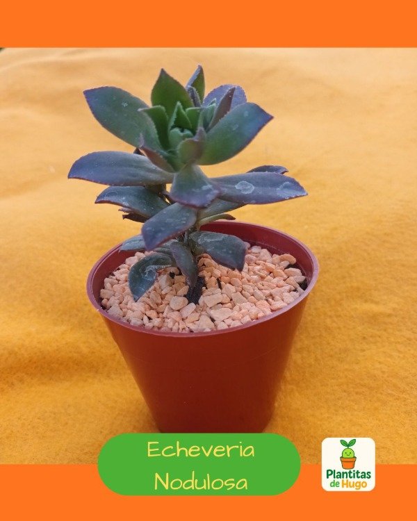 Esta hermosa sucu, se llama Echeveria nodulosa. se distingue por sus hojas con un patrón de coloración que a menudo incluye tonos rojizos o púrpuras, especialmente en los bordes y el envés. Es originaria de México. Viene en maceta nro 8, con sustrato especial para sucus: riego con sustrato bien seco, sol de 4 a 6 horas, no mas, y evitar el sol fuerte en verano. Cuidala del frio y las heladas. ¡Cuidala y disfruten juntos de la vida!