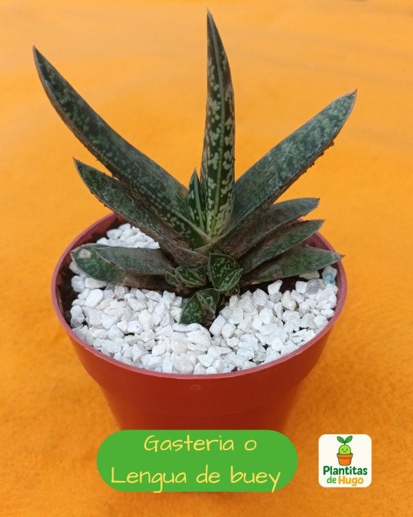 Otra suculenta hermosa, llamada Lengua de buey por sus hojas largas, carnosas y a menudo rugosas, asemejándose a la lengua de un buey. Las Gasteria son suculentas originarias de Sudáfrica, conocidas por su fácil cuidado y su capacidad para prosperar en sombra parcial o luz indirecta brillante. Viene en macetita nro 8. ¡Llevátela!